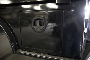 Skirted flatbed that offers built-in weatherproof toolboxes.
