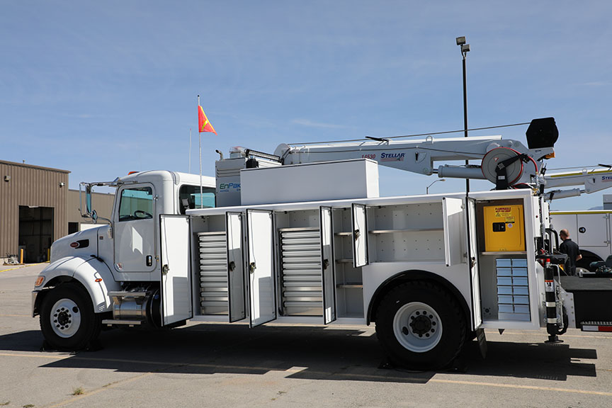 In October, Heritage Industries unveiled their first Miner Service Truck Body. A traditional service truck only averages about 27% utilization. This is where the Miner is different. The Miner can run four technicians out of a single truck, drastically increasing its utilization. For the mines, this means an increase in each truck’s return on investment as well as the need for less service trucks. Less service trucks means less maintenance expenses. The Miner also features top of the line technology. Heritage developed an “industry-first” operating system with a touch screen control center, wireless remote, and data-logging capabilities. It allows functional safety and serviceability unlike any other service truck on the market.